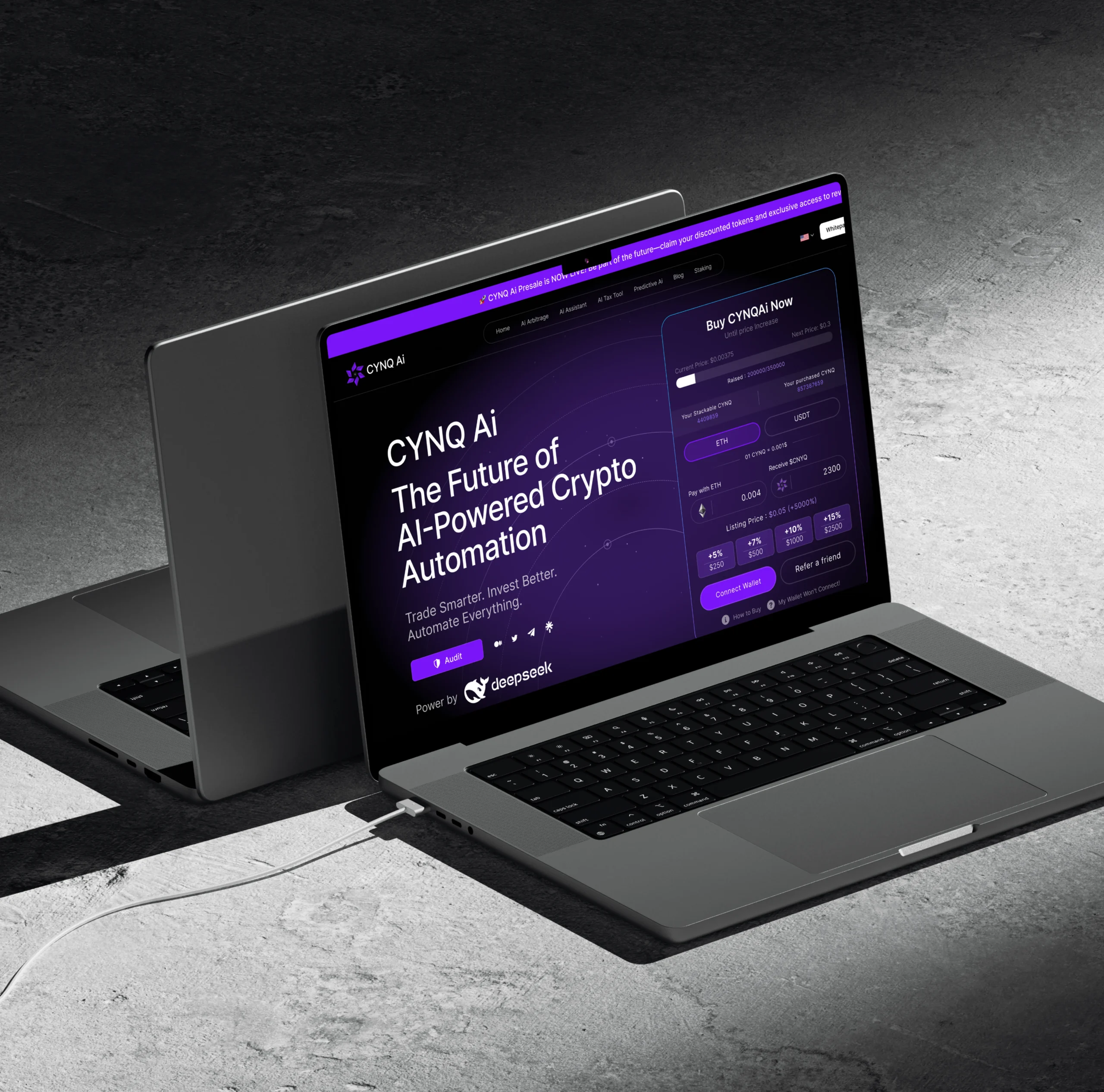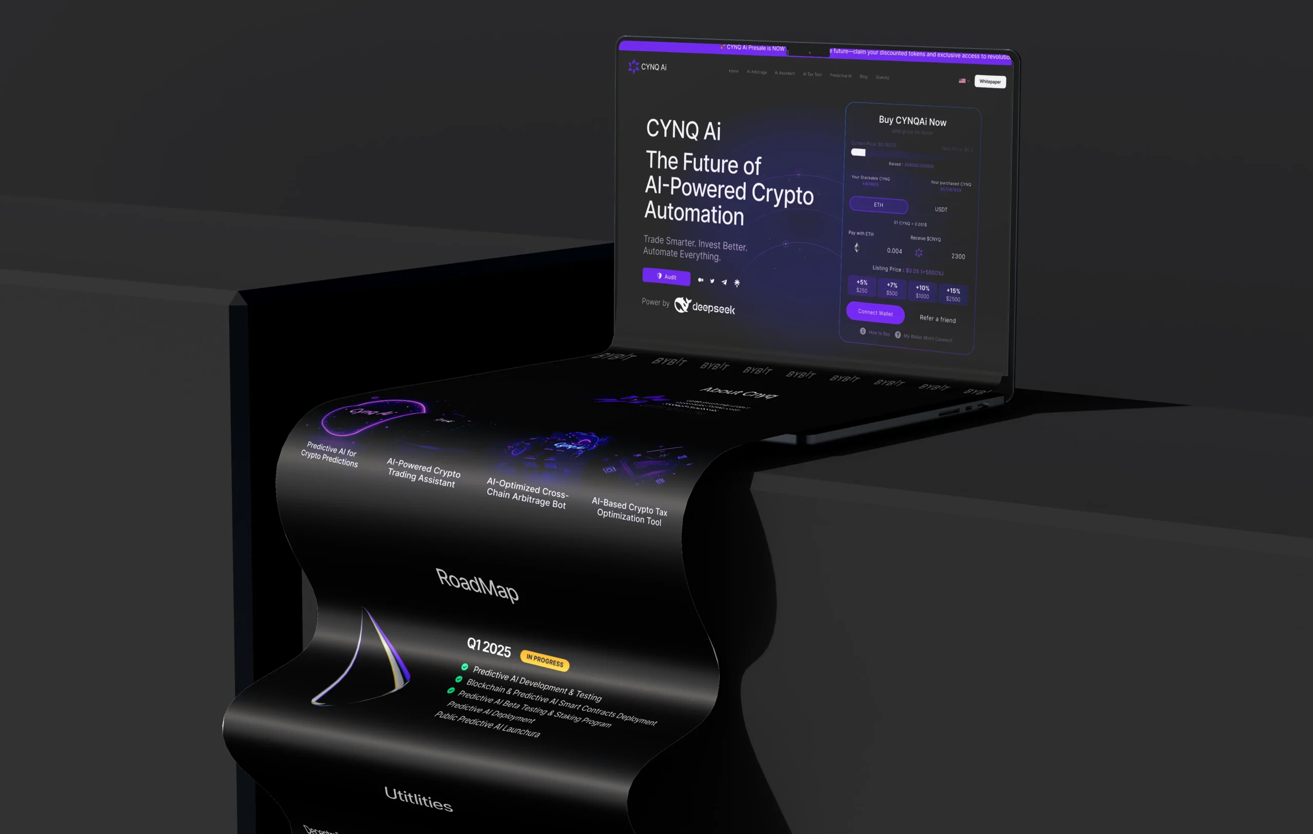 A major part of the project was crafting custom visuals and 3D animation to give Cynq-ai a distinctive digital identity: